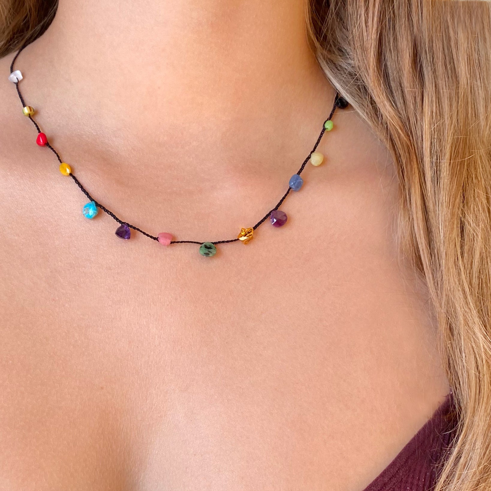 Please note this handmade necklace is made with semi-precious gemstones and vintage beads that are unique and one-of-a-kind, therefore your necklace may vary slightly from the one pictured.