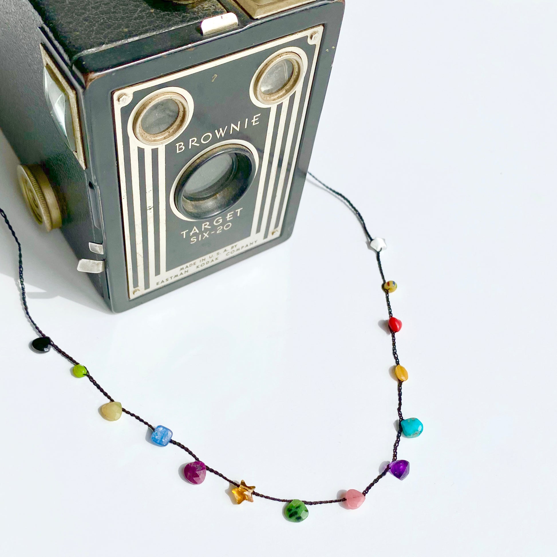 Gemstones and charms include: Amethyst, Jade, Turquoise, Ruby, Onyx, Swarovski crystal, and vintage beads.